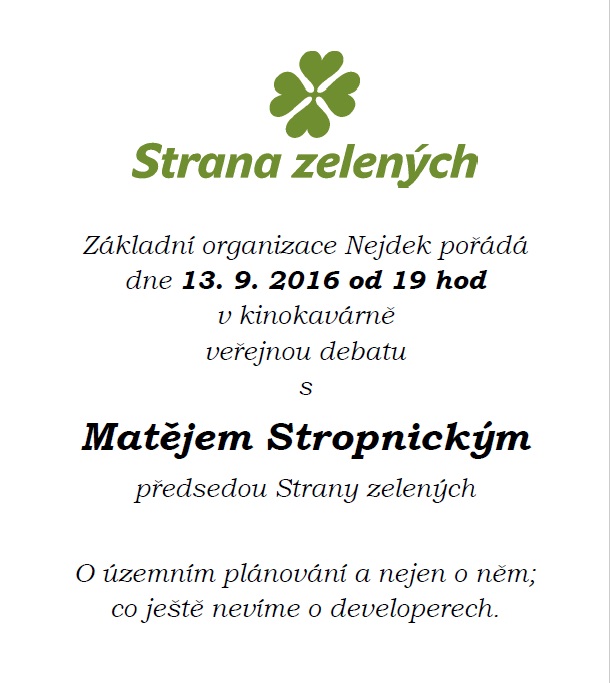 Srdečně Vás zveme na veřejnou debatu s předsedou Strany zelených